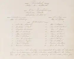 1853 meeting minutes listing the original Board of Managers, The Merchants Fund