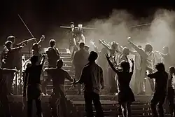 Choreography is an integral part of the musical content. In the picture, „In God we trust” scene