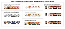 - ^ "Parque Vehicular" [Vehicle Fleet] (in Spanish). Metro de la Ciudad de México. Archived from the original on 8 October 2016. Retrieved 20 August 2016.