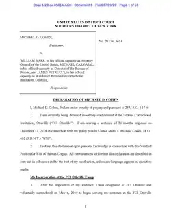 - ^ a b Feuer, Alan; Weiser, Benjamin (July 21, 2020). "Michael Cohen Claims in Suit He Was Imprisoned to Stop Trump Book". The New York Times. Archived from the original on December 18, 2020. Retrieved July 23, 2020.