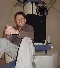 A keen amateur astronomer, he joined the Jura Astronomical Society in 1990 and between 1993 and 1998 he was one of the seven member-builders of the Jura Astronomical Observatory.[2]