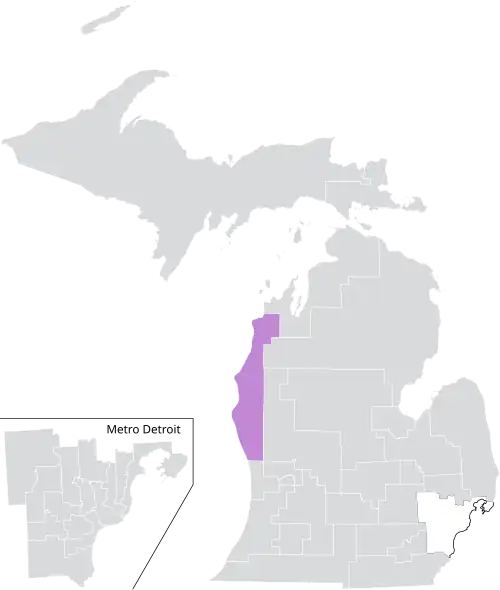 The district overlapped with Michigan's 4th and 5th congressional districts, and with the 48th, 49th, 51st, 85th, 94th, and 95th districts of the Michigan House of Representatives.[6]