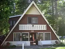 Willson and his group decided to split the property into 23 lots and create a residential beach association, requiring that all leaseholders build on their land within two years or else relinquish their leases.[5] Combined with the stipulation that all buildings constructed had to be worth at least $600, the result was the creation of a number of comfortable and fairly simple two-story cottages. In 1895,[10] the property's leaseholders decided to name it "MICH-ILL-INDA", in reference to the three states from which they hailed: Michigan, Illinois, and Indiana.[4][5]