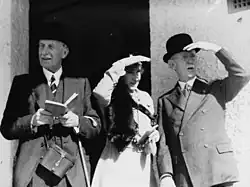 Patrick Joseph O'Shea (left) with Australian Governor-General Lord Gowrie (right) and Lady Gowrie (centre) at the races, September 1937
