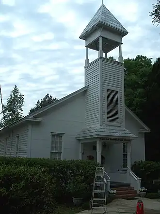 The property where the historic church now stands was deeded in 1847 by John Schuefler. George Branning donated the lumber and the labor. The church has wide clapboards on the exterior and wide random-width tongue and groove boards on the inside. Nails were made by hand at a local blacksmith shop and can still be seen in the pews. The pews are mahogany and were finished by hand with a drawknife. Mahogany is not a native wood so it was brought in by steamboat. The bell, hanging in the steeple was cast in 1852 and purchased in New York by George Branning. Its first official tolling was the death of George Branning's son.[4]