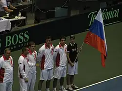 The Russian Davis Cup Team in 2009. From right to left: the team captain, Youzhny, Igor Andreev, Marat Safin and Igor Kunitsyn