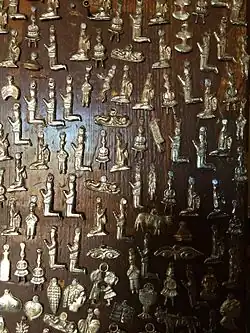 Milagros (also known as an ex-voto or dijes or promesas) are religious folk charms that are traditionally used for healing purposes and as votive offerings in Mexico, the southern United States, other areas of Latin America, and parts of the Iberian Peninsula. They are frequently attached to altars, shrines, and sacred objects found in places of worship, and they are often purchased in churches and cathedrals, or from street vendors.