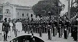 In order to remedy the deficiency of the teaching staff, in 1918 the Minister of War opened a competition with a practical test for the School's instructors, until then chosen by favoritism. The selected lieutenants and captains, under the strong influence of the Young Turks, were called the “Indigenous Mission”, as opposed to the impending French Military Mission.[36][37] Of the 19 Indigenous Mission officers present in 1920, at least 11 would later rise to the rank of general.[38] In 1919 colonel Eduardo Monteiro de Barros was appointed to the command, the first by origin as head of the troop and not as an officer of the General Staff or a former full professor. He was known for his strict application of discipline.[39] The lack of material resources was addressed in the administration of Minister of War Pandiá Calogeras (1919–1922).[36]