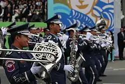 The Brazilian Marine Corps also fields for public duties the Brasilia Marine Corps Band and the Central Band of the Marine Corps. Other military bands include those of the Presidential Guard Battalion, the Independence Dragoons, and the Brazilian Air Force Academy Band. The band for the Presidential Guard Battalion is the only band in the Brazilian Army to include both a pipe band section and a drum corps. Personnel from both the Presidential Guard Battalion Band and the Band of the Independence Dragoons form part of the newly formed Army Marching Band and Pipes and Drums, formed in 2016. The Brazilian Marching Band and Pipes and Drums is composed of 74 musicians who play instruments ranging from instruments for marching bands to traditional instruments.[42] Individual military units operate music bands. Currently, the 3rd Army Division Music Band serves one of the largest military garrisons in the country.[43] Military bands are also active both in the Military Police and the Military Firefighters Corps, one of the most notable of which being the Symphonic Band of the Military Police of Paraná State.