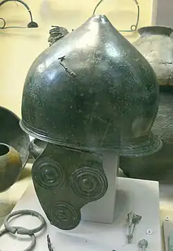 The first Celtic presence in northern Italy could date back to the Bronze Age in the 13th century with the Canegrate culture, with the arrival of proto-Celtic populations from the Alps.[3] This was followed in the Iron Age by the Golasecca culture (9th-4th century BC). A tomb dating back to this period presents in its armament characteristics of the nearby Hallstatt culture but also Etruscan or Greek.