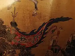 Ming depiction of mail armour - it looks like scale, but this was a common artistic convention. The text says "steel wire connecting ring armour." -