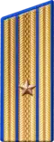 | Генера́л а́рмии | Генера́л-полко́вник | Генера́л-лейтена́нт | Генера́л-майо́р | Полко́вник | Подполко́вник | Майо́р | Kапита́н | Старший лейтена́нт | Лейтенант | Mла́дший лейтена́нт | Курсант | ||