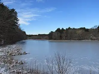 Mill Pond is a 13-acre (53,000 m2) pond in Duxbury, Massachusetts in the village of Island Creek. The pond is located south of Island Creek Pond. Island Creek runs through the pond. Route 3A runs along the southern shore of the pond. The water quality is impaired due to non-native aquatic plants in the pond. The fishway at the Mill Pond dam has deteriorated and no longer functions.