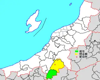 Map showing original extent of Minamiuonuma District in Niigata Prefecture: