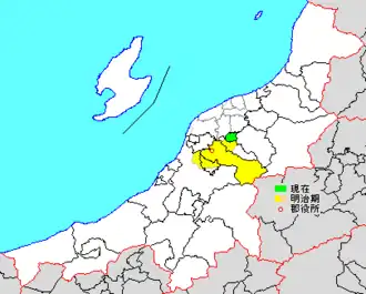 Map showing original extent of Minamikanbara District in Niigata Prefecture: