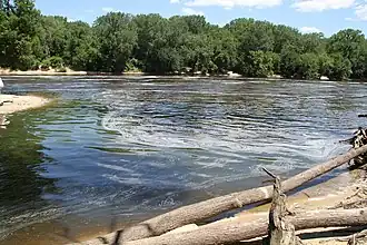 In summer, the confluence of Minnehaha Creek and the Mississippi River at a sandy beach. | |