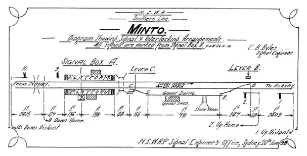 - ^ "CLOSURE OF PUBLIC LEVEL CROSSING AT MILEAGE 30 M. 22 C. NEAR MINTO ON THE SYDNEY TO GOULBURN RAILWAY". Government Gazette of the State of New South Wales. 17 July 1953. Retrieved 26 December 2021.