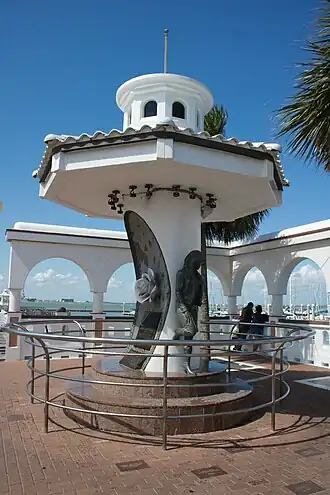 Mirador de la Flor (English: Overlook of the Flower[1][2][3]) is a monument in Corpus Christi, Texas, that honors Tejano musician Selena Quintanilla-Pérez, who was murdered on March 31, 1995 at age 23. About 30,000 people visit the monument every year, especially citizens of Corpus Christi and cities located in Texas.[4] It is located a few miles north of Selena's burial site at Seaside Memorial Park, and features a life-sized bronze statue of the singer, sculpted by Corpus Christi native H.W. "Buddy" Tatum. Selena's statue leans against a concrete pillar, looking towards the Corpus Christi Bay.