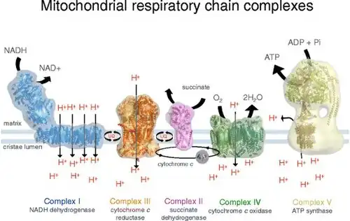 3. ^ a b c d e Kühlbrandt W (October 2015). "Structure and function of mitochondrial membrane protein complexes". BMC Biology. 13 (1): 89. doi:10.1186/s12915-015-0201-x. PMC 4625866. PMID 26515107.