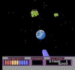 The first two parts are forward scrolling, the first taking place on earth, the second in open space and ending with either a boss battle, ranging from a Musai to the Jupitris, Paptimus Scirocco's flagship, or simply a colony or asteroid (Gryps, Axis, etc.). During these levels, player's gun is visible on screen, and can aim at and lock-on to enemies while shooting. Following this is a standard platforming section which concludes the destruction of the ship, colony, or base's reactor.[1] Three power ups in the game include a shield, which prevents some damage, a beam rifle, which allows penetrating shots on the platformer portion, and health.