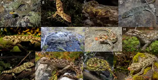 3. ^ a b c Nielsen, Stuart V.; Bauer, Aaron M.; Jackman, Todd R.; Hitchmough, Rod A.; Daugherty, Charles H. (2011-04-01). "New Zealand geckos (Diplodactylidae): Cryptic diversity in a post-Gondwanan lineage with trans-Tasman affinities". Molecular Phylogenetics and Evolution. 59 (1): 1–22. Bibcode:2011MolPE..59....1N. doi:10.1016/j.ympev.2010.12.007. ISSN 1055-7903. PMID 21184833.