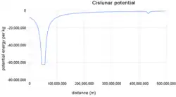 Although it might be thought that this requires constant energy input, it can in fact be shown to be energetically favorable to lift cargo off the surface of the Moon and drop it into a lower Earth orbit, and thus it can be achieved without any significant use of propellant, since the Moon's surface is in a comparatively higher potential energy state. Also, this system could be built with a total mass of less than 28 times the mass of the payloads.[24][25]