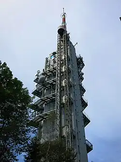 The Mont Pèlerin TV Tower is a transmission tower situated on Mont Pèlerin in the area of Chardonne, north of Vevey and is the only TV tower of Switzerland equipped with an observation deck, which is accessible by an elevator. Including this mast, the height of the tower is 122.6 metres.[1]