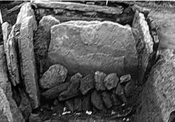 The Montobolo facies is linked also with the first megalithic monuments (as before there was not any tradition erecting funerary places with stones):[4] Camp del Ginebre (Caramany), Tavertet (cists inside a rocky barrow), Vilanera (L'Escala),[5] and the buried cist of La Bassa (La Bisbal de l'Empordà).