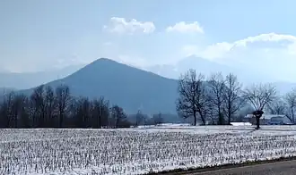 The mountain lies on the right side of the Pesio river, at the outlet of its valley onto the plain, and overlooks the village of Chiusa di Pesio to the east. A coastline of wooded relief connects it eastward to the Bric Barelllo and Costa Neranotte, while to the southeast the Colle del Mortè (711 m) connects this wide semicircle of low mountains with the rest of the Marguareis Alps.[6] Its topographic prominence is 15m.[7]
