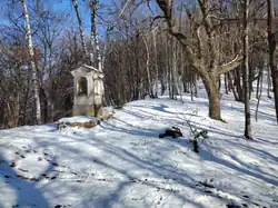 The summit of Mount Cavanero can be easily reached on foot, in about an hour's walk, passing near Mirabello Castle. The start of the hike can be made after parking the car beside the road that connects the center of Chiusa with the Mortè hill.[10]