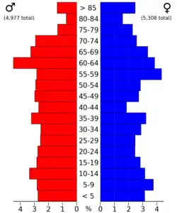 The age distribution was 25.00% under the age of 18, 6.50% from 18 to 24, 25.50% from 25 to 44, 22.80% from 45 to 64, and 20.30% 65 or older. The median age was 40 years. For every 100 females there were 90.20 males. For every 100 females age 18 and over, there were 87.30 males.
