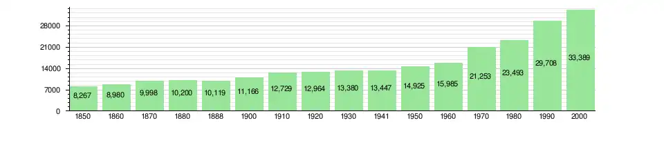 Monthey has a population (as of December 2020) of 47,912.[1] In 2000, most of the population spoke French (29,275 or 87.7%) as their first language; German was the second most common (874 or 2.6%) and Italian was the third (808 or 2.4%). There were 14 people who speak Romansh.[4]