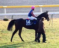 Montjeu ran twice as a two-year-old in the autumn of 1998. On his racecourse debut he appeared in the Prix de la Maniguette over 1600 m at Chantilly and won "easily" from nine opponents.[5] A month later, he was moved up to Listed class and won the Prix Isonomy by three quarters of a length from Spadoun. Montjeu's form was boosted two weeks later when Spadoun won the Group One Critérium de Saint-Cloud. At the end of the year, a half-share in Montjeu was sold to the Coolmore organization, represented by Michael Tabor and Susan Magnier.[4]