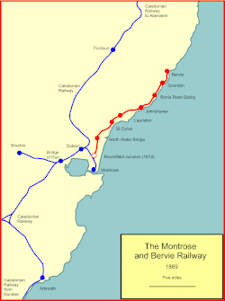 The Montrose and Bervie Railway was a Scottish railway. When the Aberdeen Railway opened in 1850, the coastal settlements north of Montrose were not linked in, and local interests promoted a branch line from Montrose to Bervie. They found it impossible to raise capital at first, but from 1861 the larger railways were promoting new connections around Aberdeen, and the Great North of Scotland Railway (GNoSR) decided that the Bervie line would give it a route to the south.