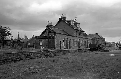 1. ^ Butt says[12] the station opened when the Aberdeen Railway opened its main line in 1850, but this is a mistake; the Aberdeen Company did not have a station at the location; see the 25 inch Ordnance Survey map Forfar Sheet XXVIII.14 surveyed 1862; also Bradshaw for 1850 which shows no station there. Smith says[13] that it opened in August 1866 or immediately after.