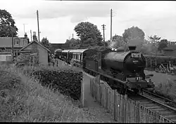 The passenger train service in 1895 consisted of six trains each way daily, with an extra Fridays only service; the journey time was typically 38 to 40 minutes.[9] By 1922 the service had reduced to three daily with an additional Saturday trip.[10]