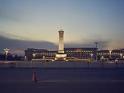 The Monument to the People's Heroes (Chinese: 人民英雄纪念碑; pinyin: Rénmín Yīngxióng Jìniànbēi) is a ten-story obelisk that was erected as a national monument of China to the martyrs of revolutionary struggle during the 19th and 20th centuries. It is located in the southern part of Tiananmen Square in Beijing, in front of the Mausoleum of Mao Zedong. The obelisk monument was built in accordance with a resolution of the first plenary session of the Chinese People's Political Consultative Conference (CPPCC) adopted on November 30, 1949, with construction lasting from August 1952 to May 1958. The architect of the monument was Liang Sicheng, with some elements designed by his wife, Lin Huiyin. The civil engineer, Chen Zhide (陈志德) was also instrumental in realizing the final product.[1]