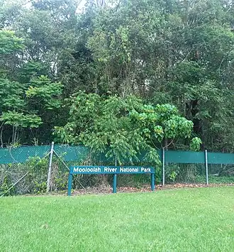 The Mooloolah River National Park is a nationally protected area located on the Sunshine Coast, Queensland. It covers an area of 830.9 hectares and is bordered by the Mooloolah River to the east, Claymore and Dixon Roads to the west, and the Lower Mooloolah River Environmental Reserve to the south. It is bisected by the Sunshine Motorway with the northern, 161.93 hectare component of the Park being a later addition. The Park was initially vacant crown land prior to national park designation in 1960. Surrounding land uses include livestock grazing, urban development and the campus of the University of the Sunshine Coast. It is the second largest mainland park on the coastal lowlands in South East Queensland after Noosa National Park and represents an example of low-lying coastal floodplain distinctive of the region.[1]