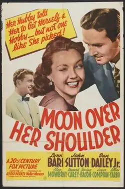 Moon Over Her Shoulder is a 1941 American comedy film directed by Alfred L. Werker and starring Lynn Bari, John Sutton and Alan Mowbray.[1] It was produced and distributed by Twentieth Century Fox.