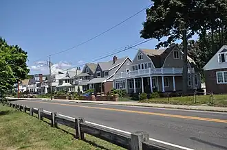 The Morris Cove Historic District encompasses a former summer resort area in eastern New Haven, Connecticut. Bounded in the north by Myron Street, the south by Morris Causeway and Lighthouse Road, and on the east by the East Haven town line, the area was developed as a coastal summer community before being transformed into a streetcar suburb in the second quarter of the 20th century. It contains a high concentration of quality residential architecture from the first half of the century, and was listed on the National Register of Historic Places in 1985.[1]