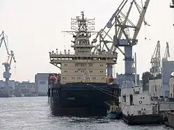 In July 2004, the Saint Petersburg-based Baltic Shipyard won an international tender for the construction of two 16-megawatt diesel-electric icebreakers for Rosmorport, a state-owned company established in 2003 to manage Russia's port infrastructure and operate its fleet of diesel-powered icebreakers.[4] Although the shipyard had built five Arktika-class nuclear-powered icebreakers in 1975–1992 and had the sixth under construction at the time, these would be the first non-nuclear icebreakers built on a Russian shipyard in over three decades and the first new icebreakers ordered following the dissolution of the Soviet Union.[8] While the state budget did not initially allocate funding for the new icebreakers, the construction was nonetheless set to begin already in 2004 and the lead ship was to be delivered by November 2006.[4]