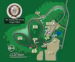 Mount Cotton Hillclimb is a permanent tarmac hillclimbing circuit at Mount Cotton, Queensland, Australia. It is owned and run by the MG Car Club of Queensland.[3] Club events are run at intervals of around 4–6 weeks. The Queensland Hillclimb Championship is run there every year, and the Australian Hillclimb Championship is run there every 7 years.