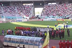 The national football team of Mozambique before a game against Tunisia