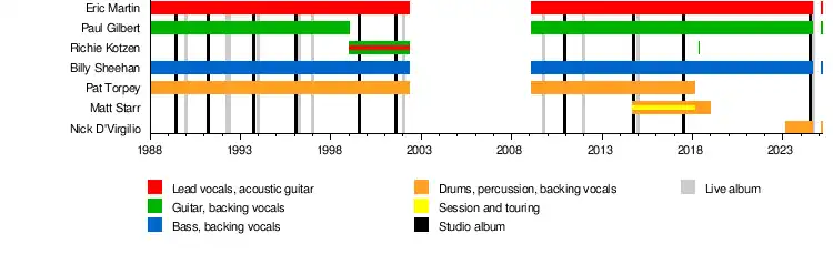 | Past members | Eric Martin Billy Sheehan Paul Gilbert Pat Torpey Richie Kotzen Matt Starr Nick D'Virgilio |