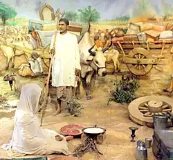 The photo monument depicting a couple migrating from India to Pakistan with their household stuff and cattle during the Partition of India.