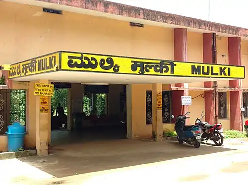 Mulki railway station is a station on Konkan Railway. Mulki railway station is situated in Dakshina Kannada (D.K.) district of Karnataka state, Republic of India.[1]It is at a distance of 724.800 km (450.4 mi) down from north most starting point of Konkan Railway jurisdiction Roha. The preceding station on the northern direction is Nandikoor railway station and the next station on southern direction is Surathkal railway station.[2]