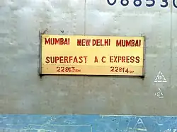 The 22913 / 14 Mumbai Central–New Delhi AC Suvidha Special Express ran from Mumbai Central with technical halts at and via Vadodara Junction, Kota Junction to New Delhi.