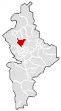 Outside the Monterrey Metropolitan Area, the state is sparsely populated. The largest municipality by population is Monterrey, with 1,142,994 residents (19.75% of the state's total), while the smallest is Parás with 906 residents.[1] The largest municipality by land area is Galeana which spans 7,068.30 km2 (2,729.09 sq mi), and the smallest is Abasolo, with 46.90 km2 (18.11 sq mi).[2] The newest municipality is Melchor Ocampo, established in 1948.[6]