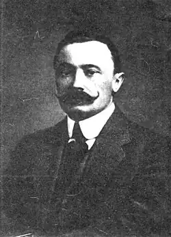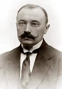 While in Odessa, Sleževičius became politically involved, with Juozas Gabrys taking credit for converting him to the Lithuanian nationalist cause.[3] He was also involved in a number of cultural and religious activities, organizing courses, concerts, and plays, and arranging for religious mass in the Lithuanian language. Sleževičius took part in the Russian Revolution of 1905, maintaining public order together with other volunteers. That same year, he represented Odessa Lithuanians in the Great Seimas of Vilnius and started contributing to the newspaper Lietuvos ūkininkas.