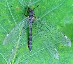 Myrmeleon immaculatus is a species of pit-trapping antlion in the family Myrmeleontidae. It is found in Central America and North America and is a particularly common species in the eastern United States.[1][2][3]This species is usually a blue-grey color and the adults are 30mm long.